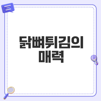 닭뼈튀김은 바삭한 식감과 매력적인 양념으로 많은 사랑을 받고 있습니다. 오늘은 이 특별한 간식의 두 가지 매력을 깊이 있게 살펴보도록 하겠습니다.